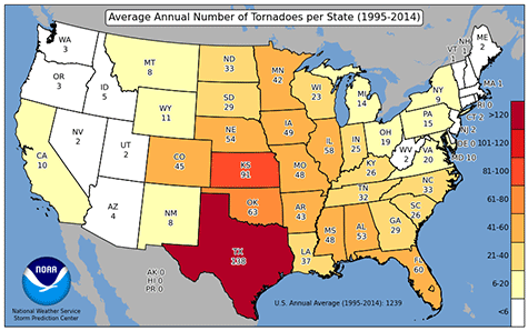 The first two posts of this series covered how lightning and heat can affect work. The next weather condition is the hardest to predict…tornadoes. On average 1,200 tornadoes are reported throughout the U.S. resulting in $1.1 billion in property damage and 80 deaths annually.