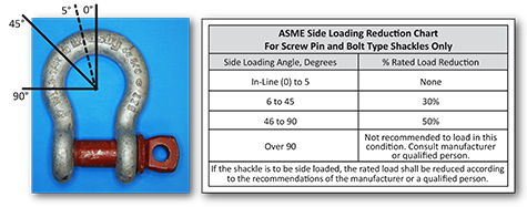 - When lifting with one sling, make sure the sling is centered (0 – 5 degrees) in the bow of the shackle for maximum capacity.